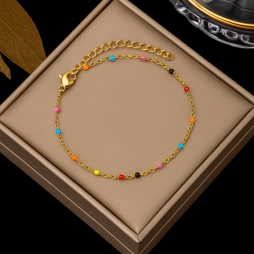 Minimalist Gold Chain Bracelet with Multicolor Beads
